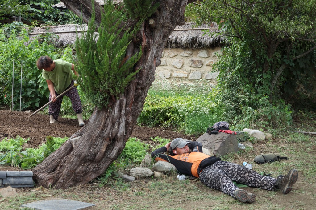Rencontre marquante grâce à C. (qui se fait des amis en moins de 5 minutes) avec un groupe de personnes âgées ramassant les déchets sur la route et le port. Séance photo spontanée avec le responsable du groupe, puis petit café une fois le travail terminé.