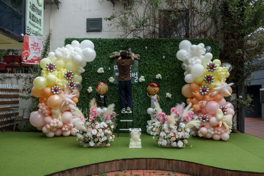 The next morning, we explored the Bangcheon Market neighborhood and the street dedicated to singer Kim Kwang Seok, frequented mainly by Koreans. A touching moment: a team finalizing the floral arrangements for a wedding, delighted by our interest, asked us to pose in front of their creation.