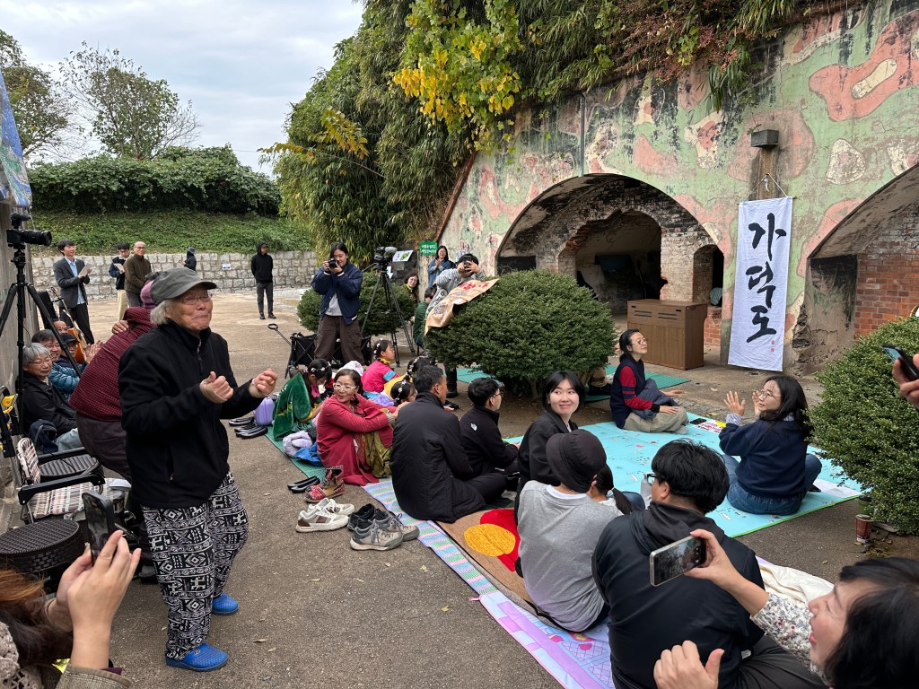 Samedi, avec le mari d’Anna et deux autres résidents, nous sommes allés sur l’île de Gadeok Do (가덕도) dans un petit village de pêcheur où le photographe Lee Dong Keun organisait le Birdsong Music Festival pour protester contre le projet de construction d’un nouvel aéroport qui menace la tranquilité de cette petite île et des ses habitants, notamment celle des nombreux oiseaux qui la peuplent. C’était très festif et joyeux.