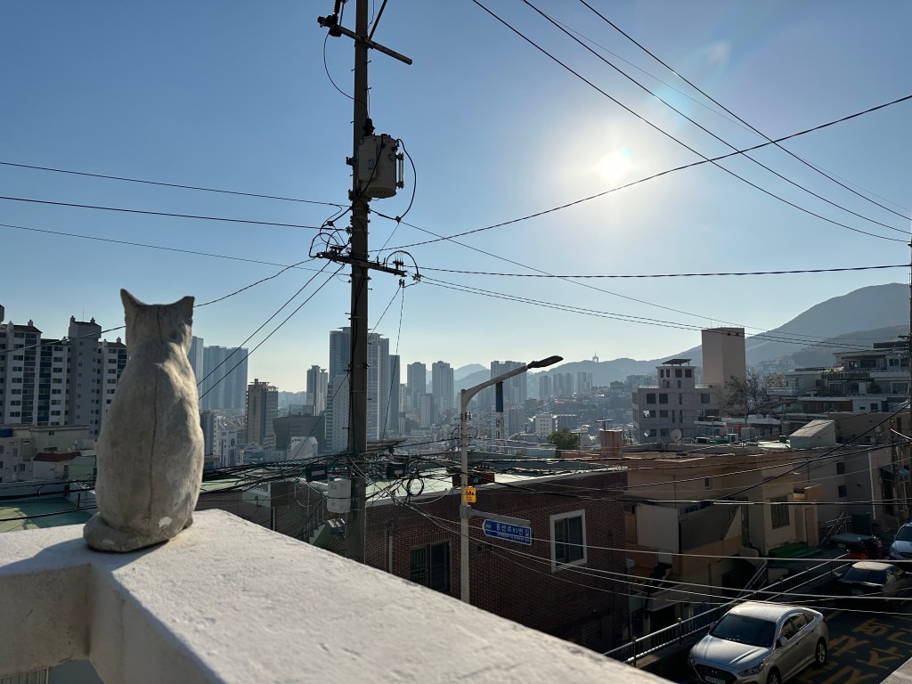 Je retournerais bien à 장산 aussi. Je ne sais plus si je vous avais parlé de ma randonnée au sommet. C’était il y a quinze jours, il m’a fallu une bonne heure et demie pour arriver au sommet. Alors peut-être que je dirai au revoir à la montagne depuis ma fenêtre.
