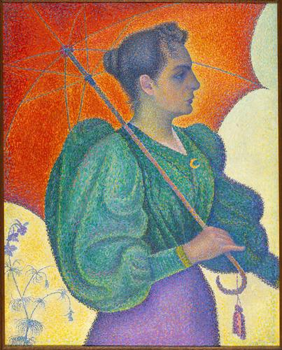 Thursday, January 1st, I decided to go looking for umbrellas at the Musée d’Orsay. Surprise: huge crowds of tourists, particularly Asian, lining up… to photograph themselves in front of the clock! I had spotted several paintings on the museum’s website, including Signac’s Woman with a Parasol.