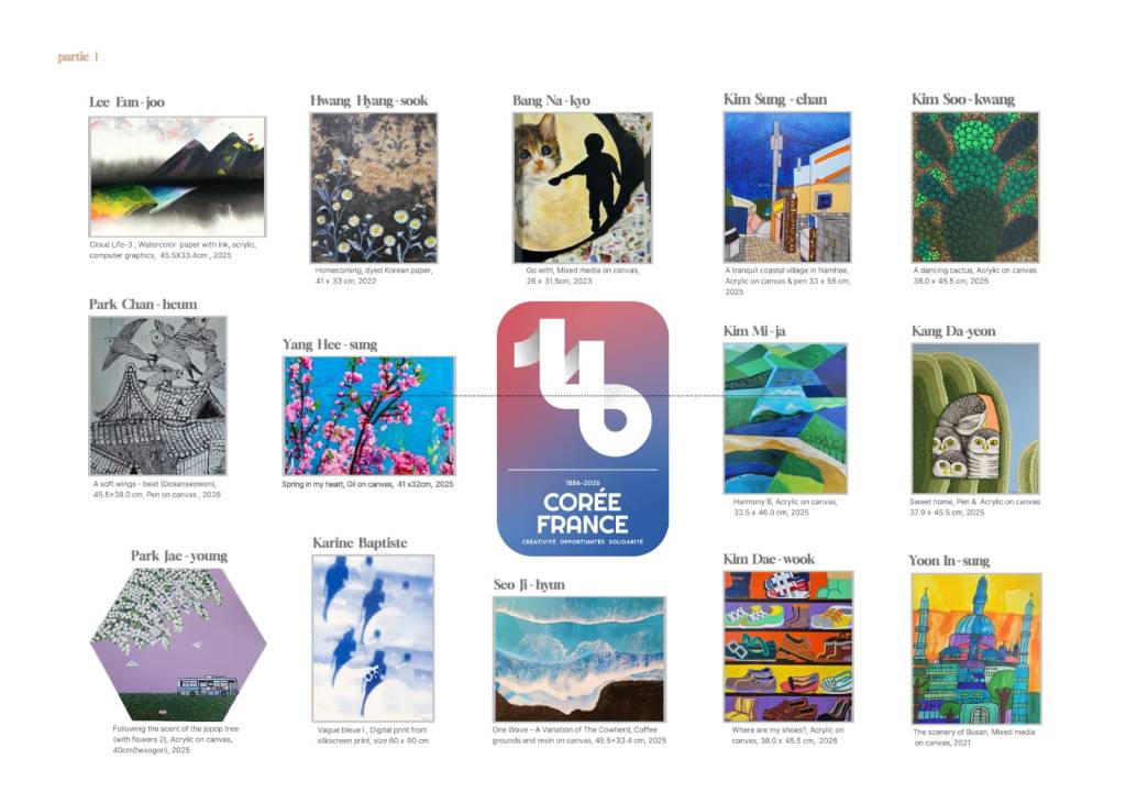 For those in Paris, the first, in collaboration with Korean artists, as part of the 140th anniversary of Franco-Korean relations, will take place in the 18th arrondissement, at the La ville a des arts gallery (15 rue Hégésippe Moreau) from March 9 to 22, with a first opening on Tuesday, March 10, and a second on the 17th.
